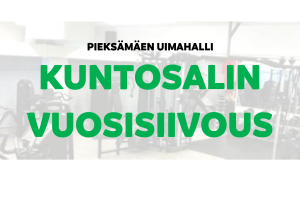 Uimahallin kuntosalin vuosisiivous maanantaina 16.6. klo 6-16. jolloin kuntosali suljettu. klo 16.00 eteenpäin käytössä normaalisti.