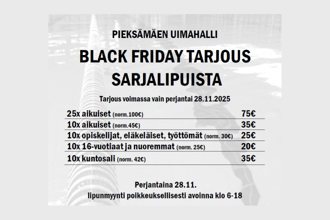 | 10x 16-vuotiaat ja nuoremmat (norm. 25€) | 20€ |
